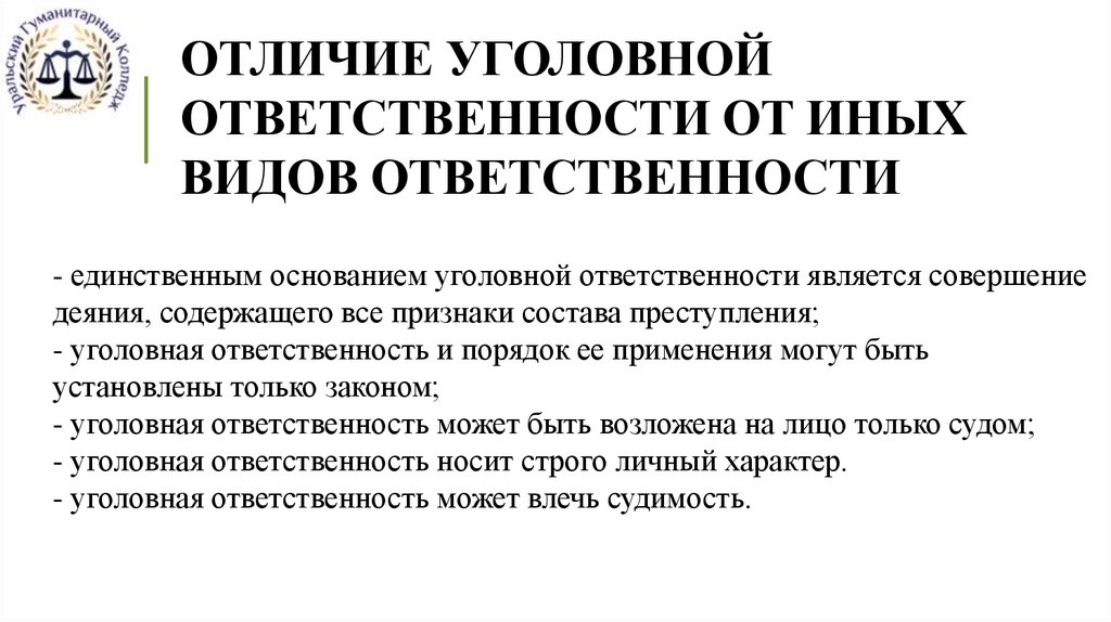 ОТЛИЧИЕ УГОЛОВНОЙОТВЕТСТВЕННОСТИ ОТ ИНЫХ