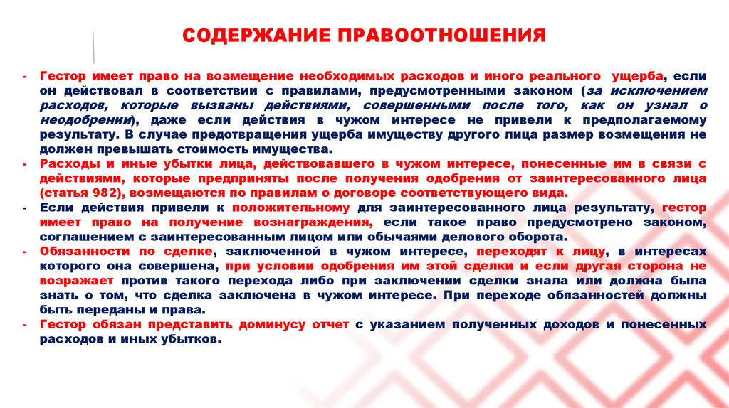 также – внутренние отношения), с одной стороны, и отношения между представляемым или