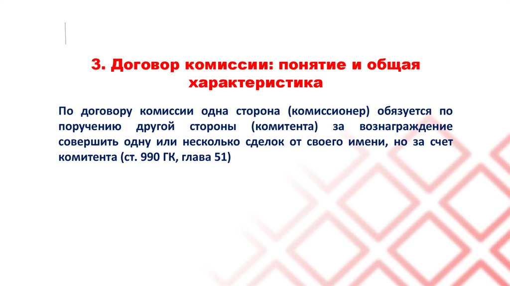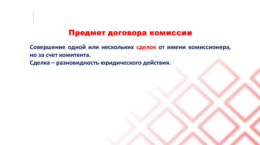 Комиссия: комиссионер совершает от своего имени, но за счет комитента одну или