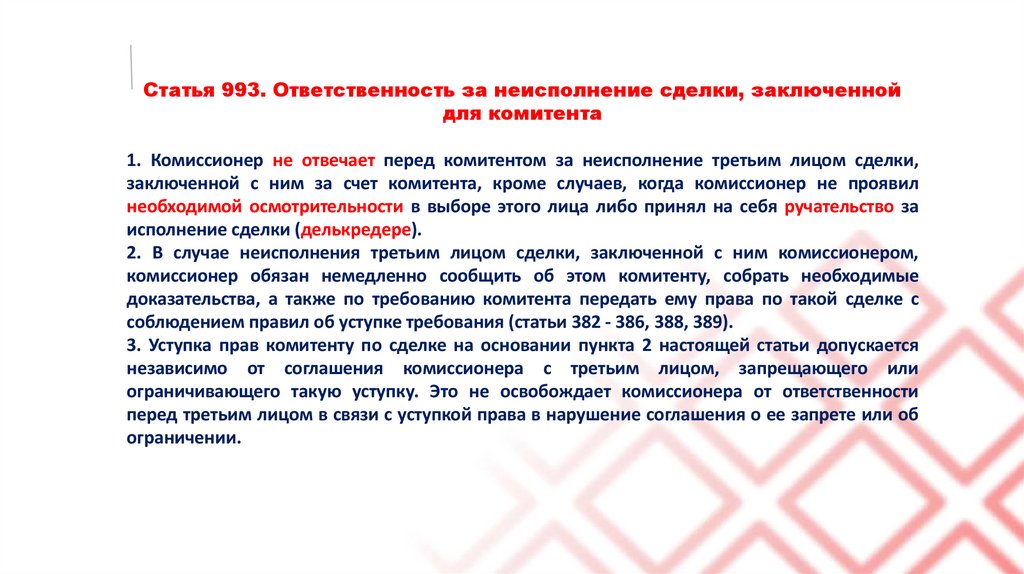 Статья 993. Ответственность за неисполнение сделки, заключеннойдля комитента