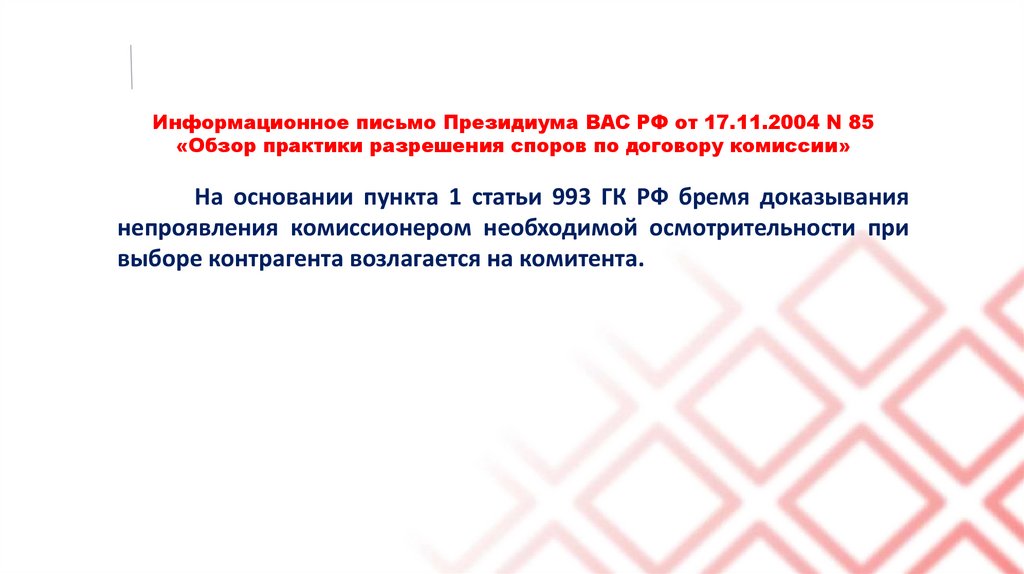 На основании пункта 1 статьи 993 ГК РФ бремя доказывания