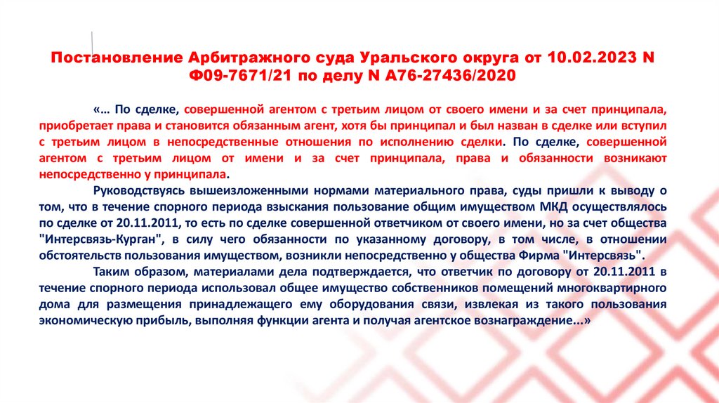 экономическую прибыль, выполняя функции агента и получая агентское вознаграждение...»