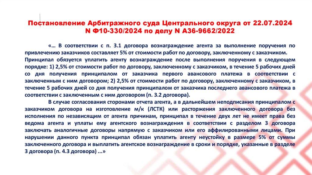 «… В соответствии с п. 3.1 договора вознаграждение агента за выполнение поручения по