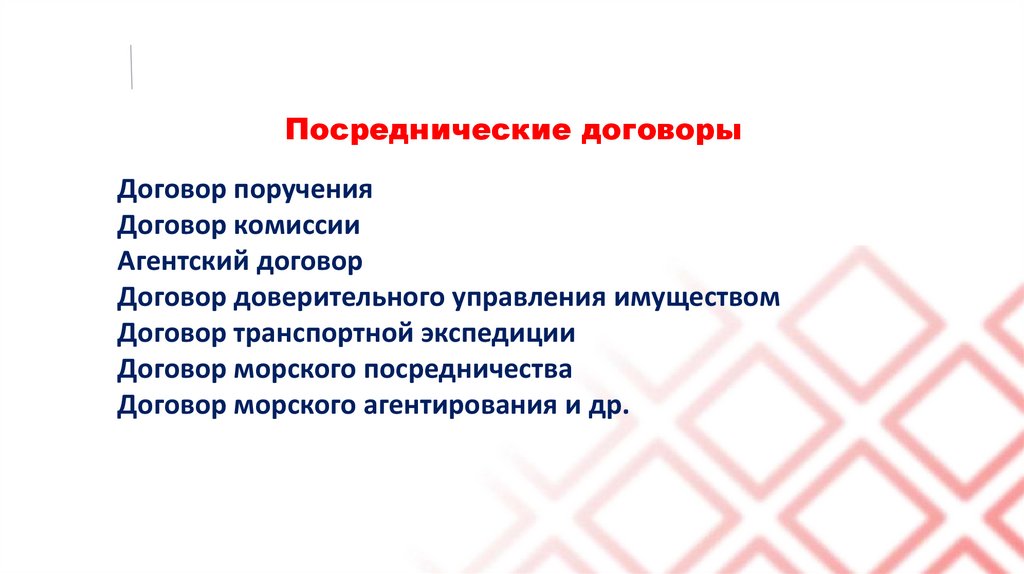 ПОСРЕДНИЧЕСКИЕ ДОГОВОРЫДоктрина: