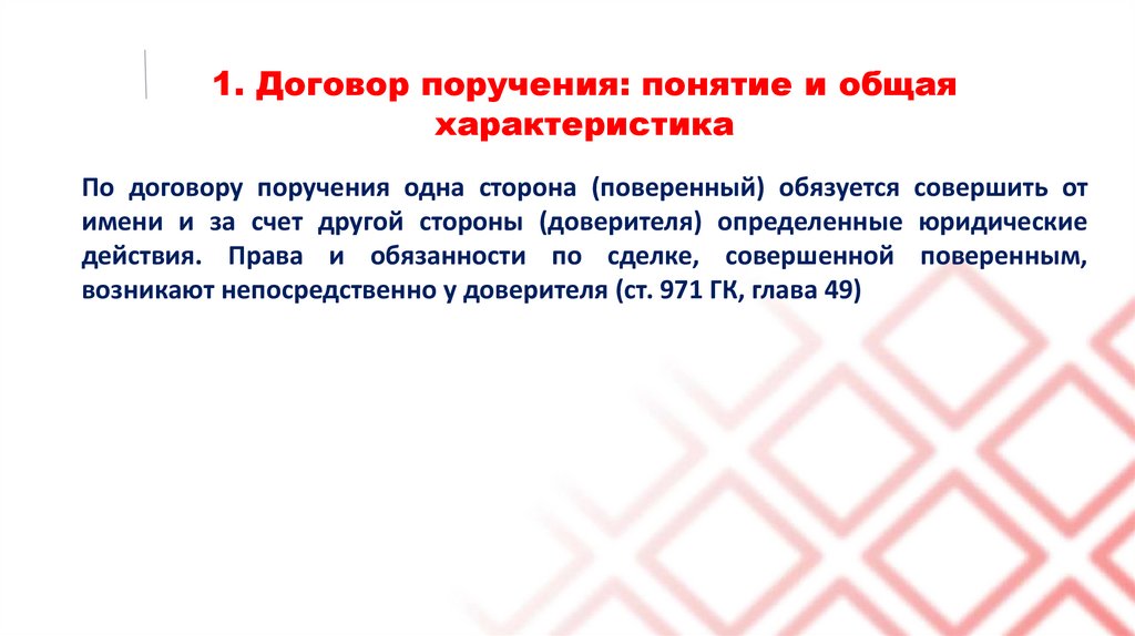Содержание1. Договор поручения: понятие и общая характеристика.
