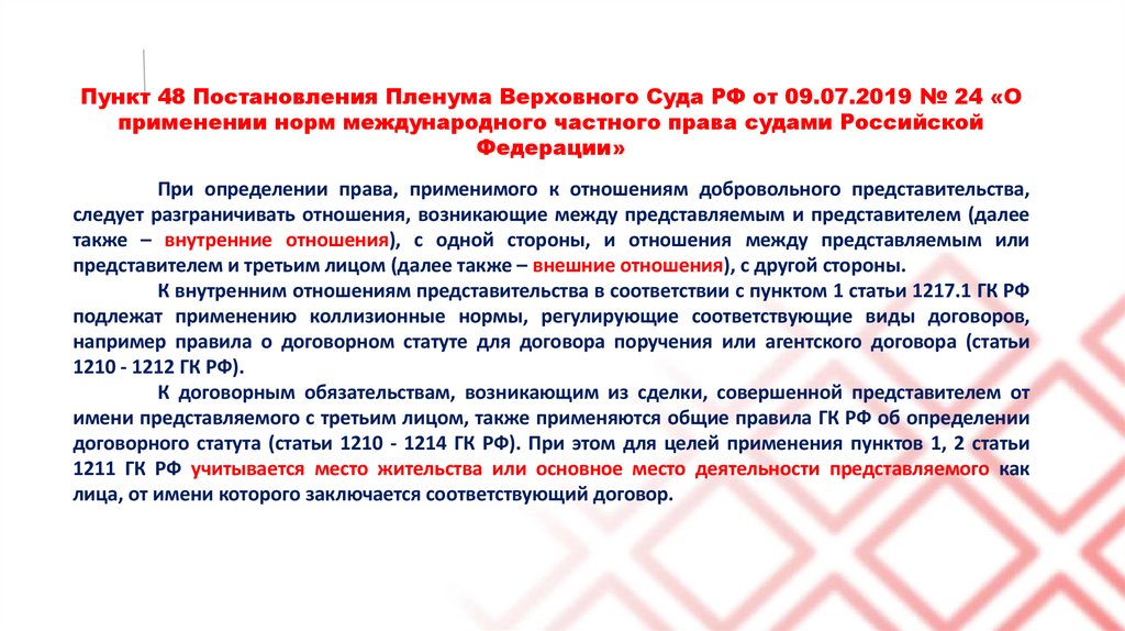Пункт 48 Постановления Пленума Верховного Суда РФ от 09.07.2019 № 24 «Оприменении норм международного частного права судами Российской