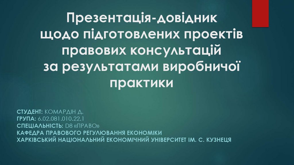 1. Презентація-довідник щодо підготовлених проектів правових консультацій за результатами виробничої практики
