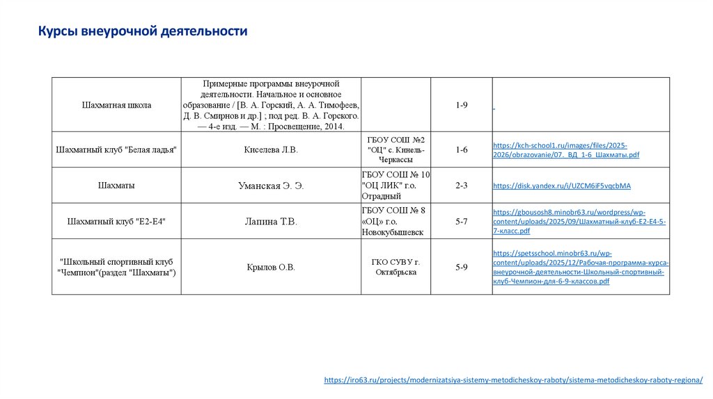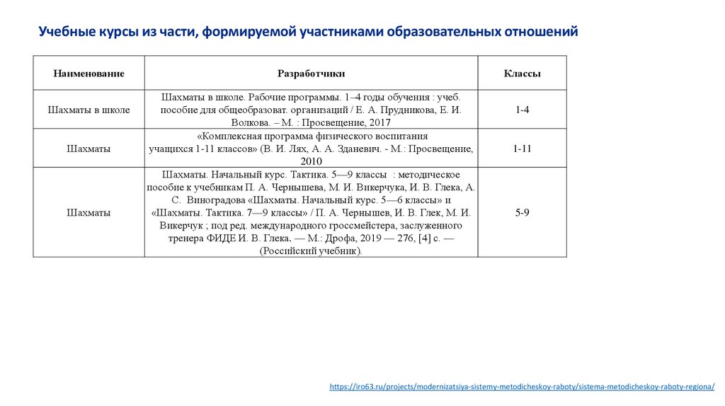программ обучения по шахматам (https://iro63.ru/projects/modernizatsiya-sistemymetodicheskoy-raboty/sistema-metodicheskoy-raboty-regiona/);