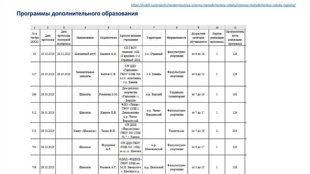 https://iro63.ru/projects/modernizatsiya-sistemy-metodicheskoy-raboty/sistema-metodicheskoy-raboty-regiona/Программы дополнительного образования