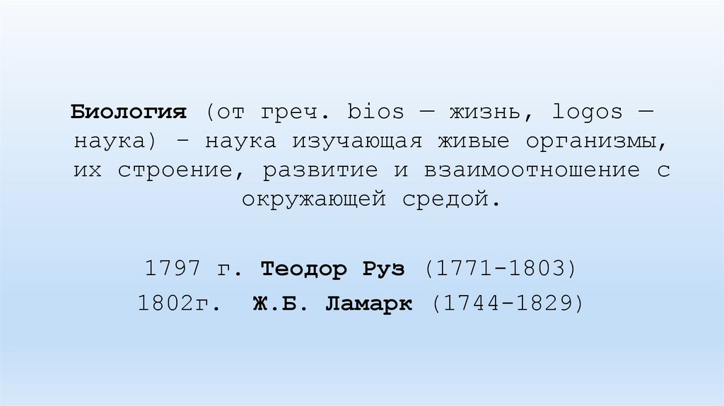 Биология (от греч. bios — жизнь, logos —наука) – наука изучающая живые организмы,