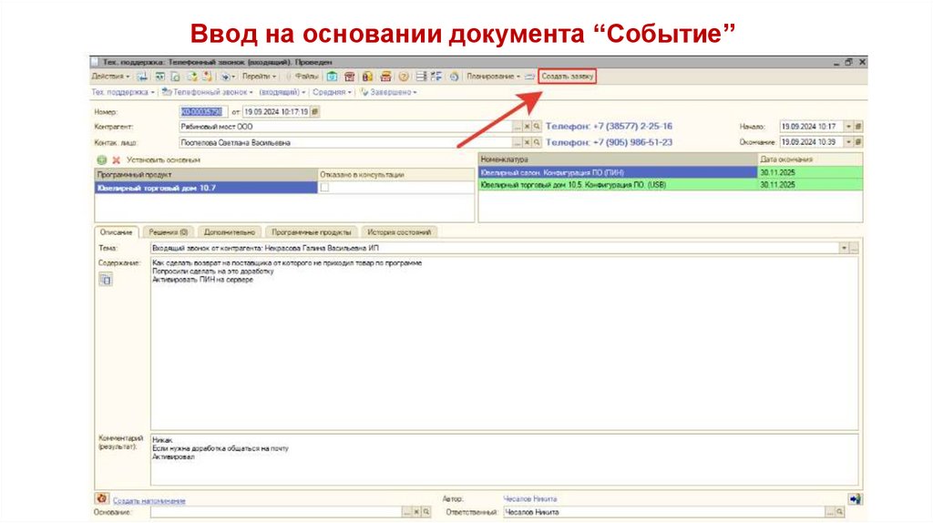Ввод на основании документа “Событие”14.