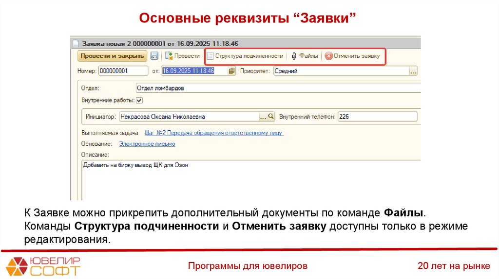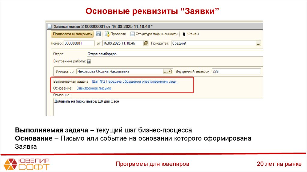 Основные реквизиты “Заявки”Выполняемая задача – текущий шаг бизнес-процесса