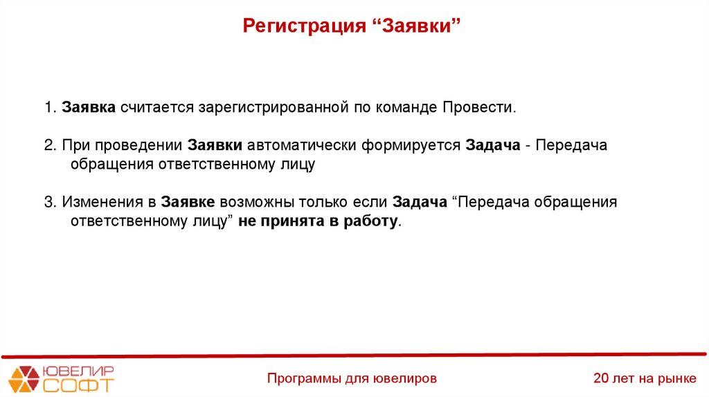 Работа по заявкамДемонстрация сквозного процесса в