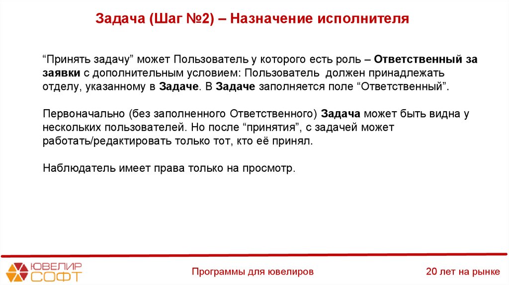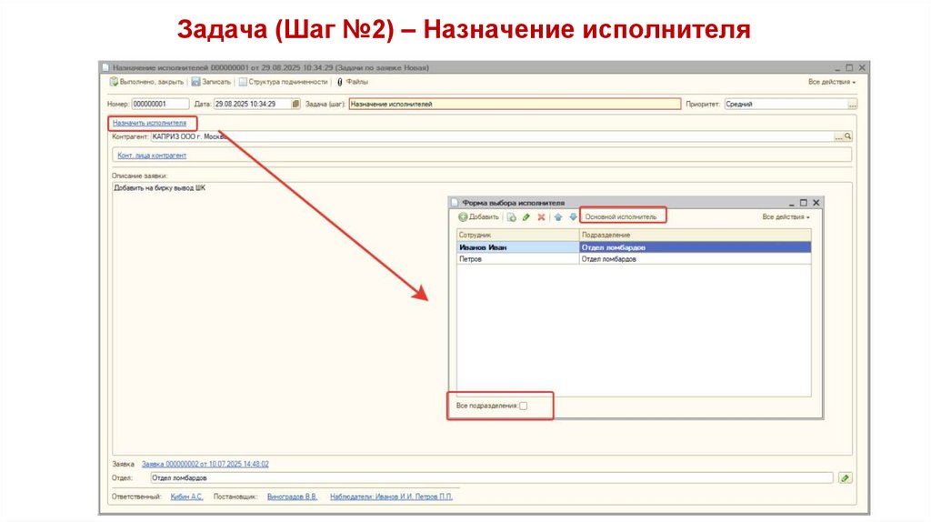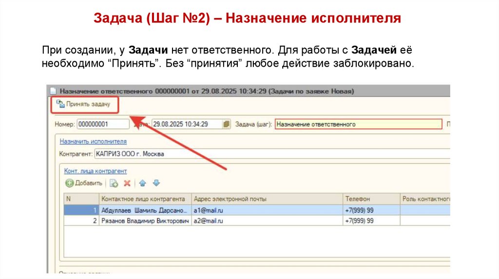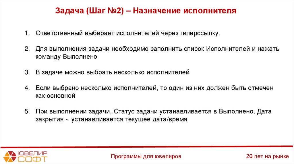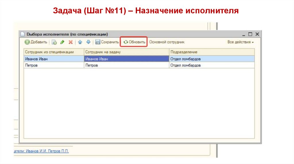 Задача (Шаг №11) – Назначение исполнителя49.