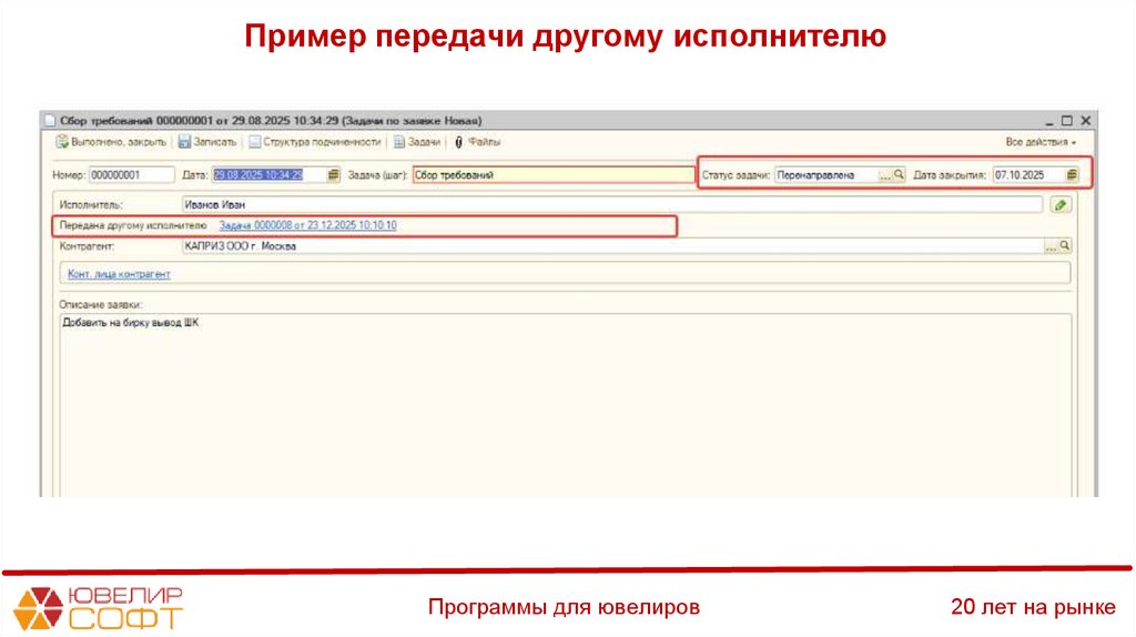 4. Передать другому сотруднику - передача задачи другому исполнителю