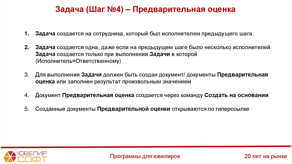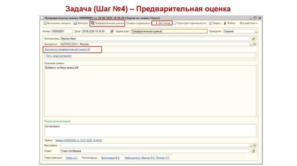 Задача (Шаг №5) – Согласование предварительной оценки37.