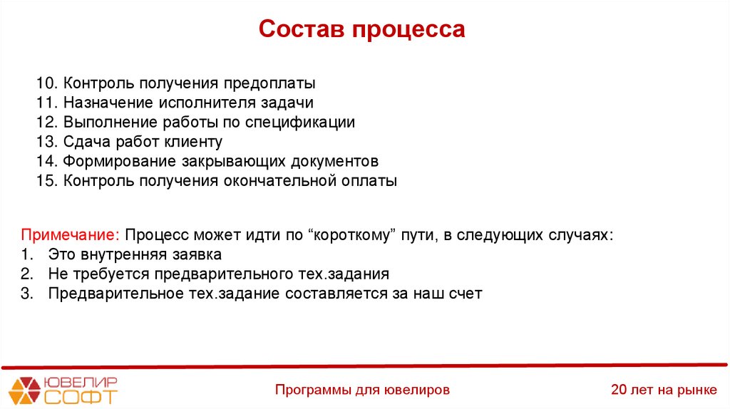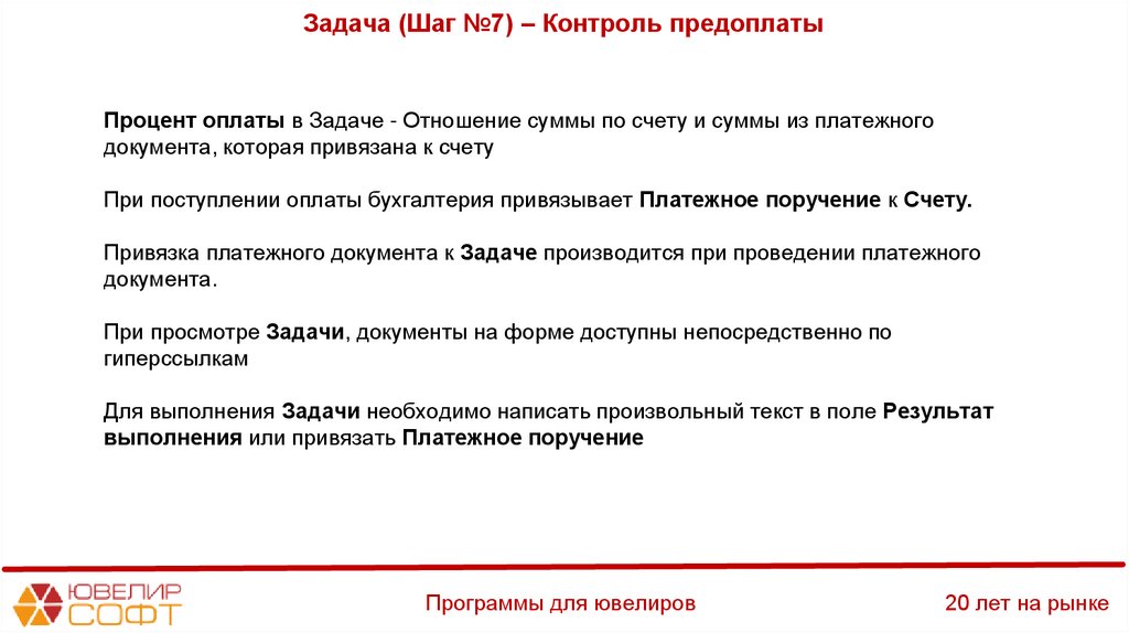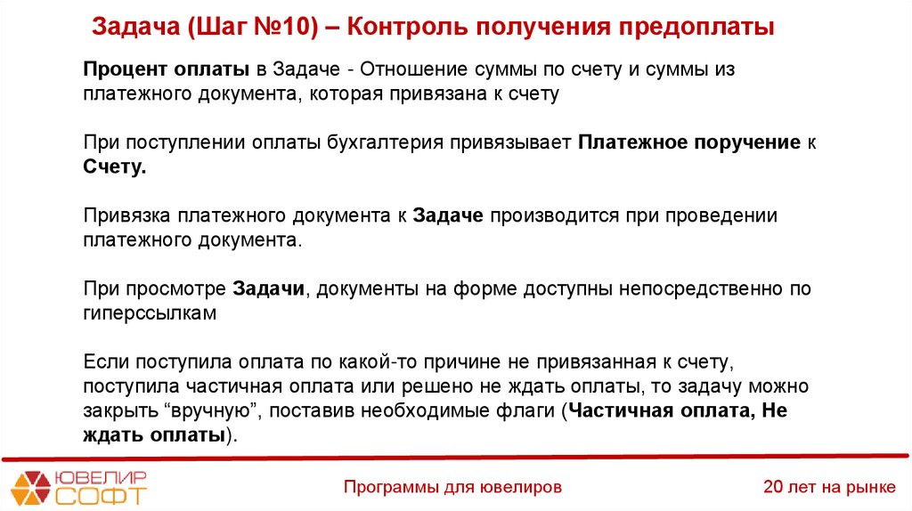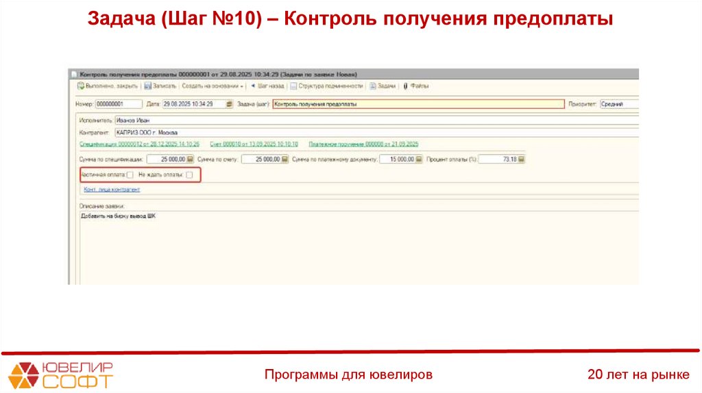 Задача (Шаг №10) – Контроль получения предоплатыПрограммы для ювелиров