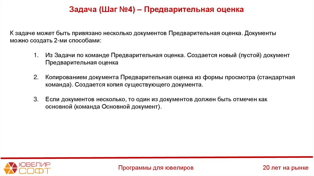 2. На основании документа Предварительная оценка.