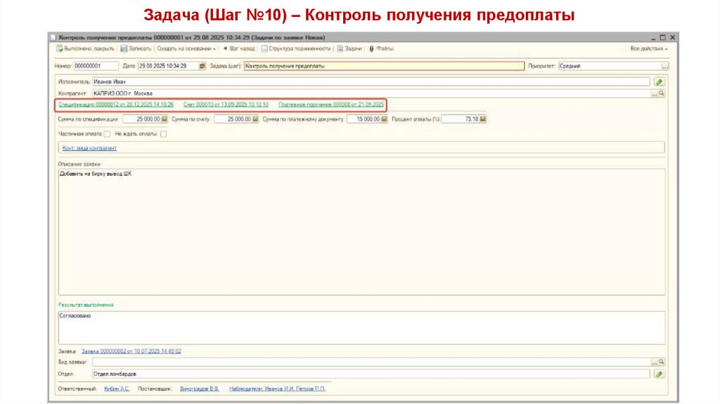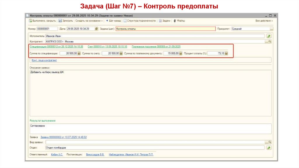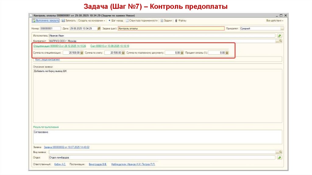 Задача (Шаг №7) – Контроль предоплаты41.