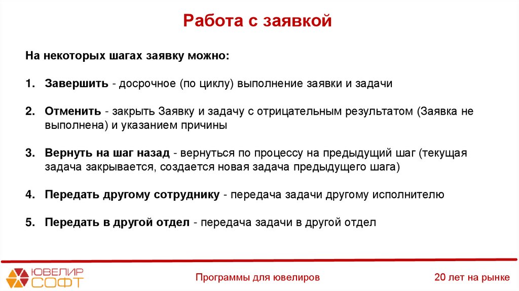 Работа с заявкойНа некоторых шагах заявку можно: