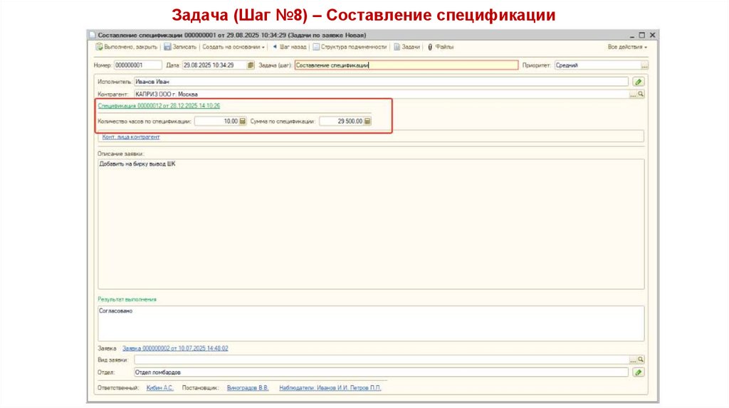 2. Если после выбора Исполнителей в Задаче в Спецификацию были внесены