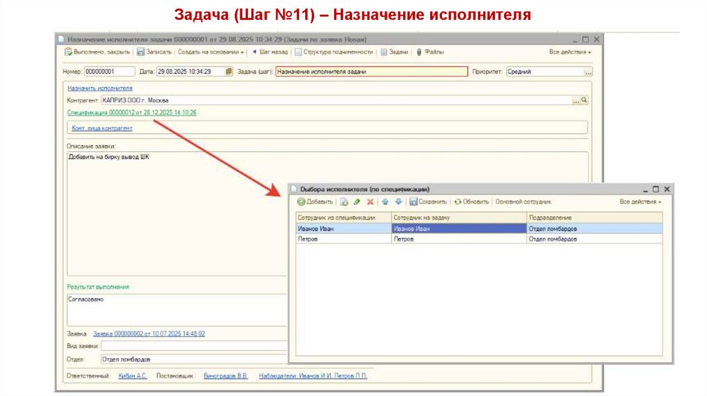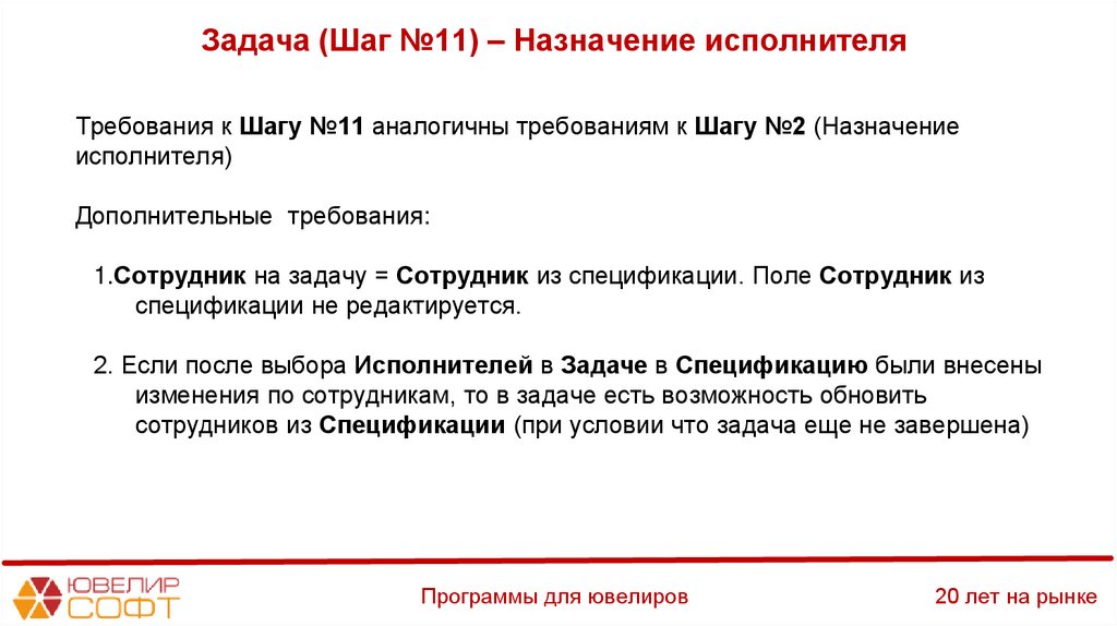 Задача (Шаг №11) – Назначение исполнителяТребования к Шагу №11 аналогичны требованиям к Шагу №2 (Назначение