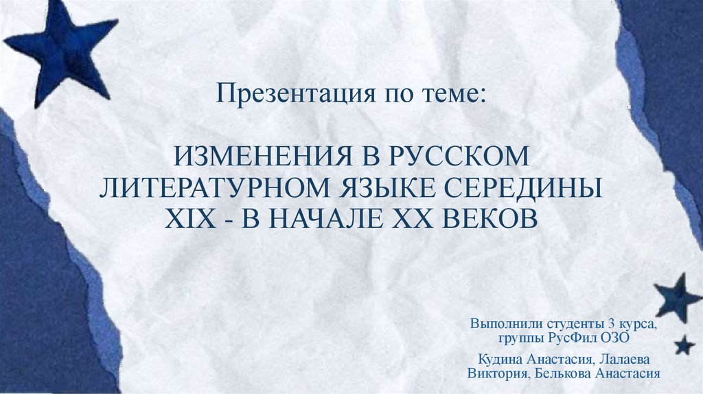 1. Презентация по теме: ИЗМЕНЕНИЯ В РУССКОМ ЛИТЕРАТУРНОМ ЯЗЫКЕ СЕРЕДИНЫ XIX - В НАЧАЛЕ XX ВЕКОВ