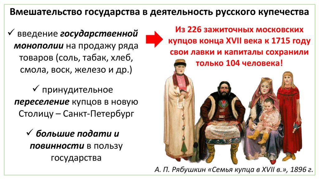 Вмешательство государства в деятельность русского купечествавведение государственной