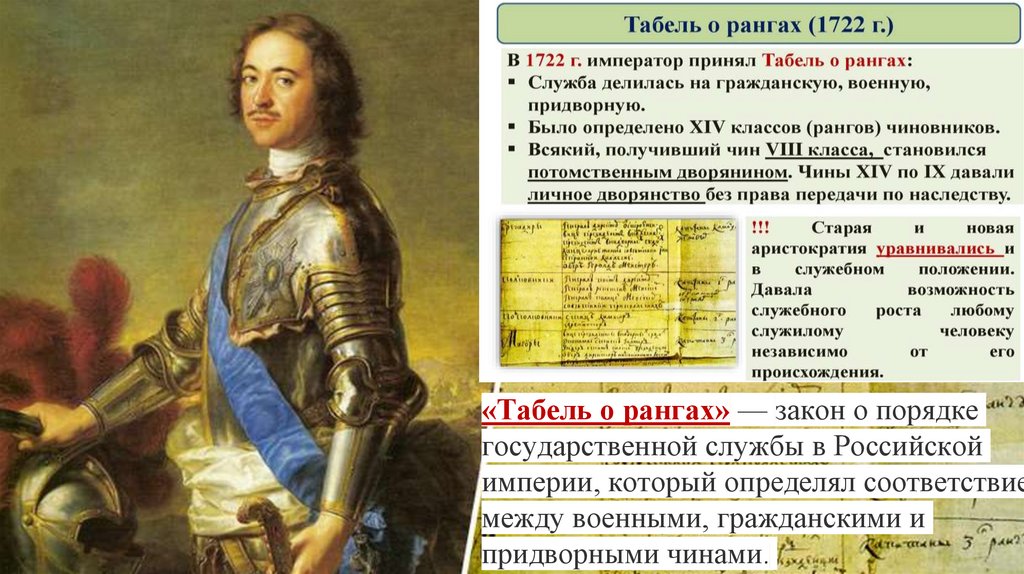 «Табель о рангах» — закон о порядкегосударственной службы в Российской