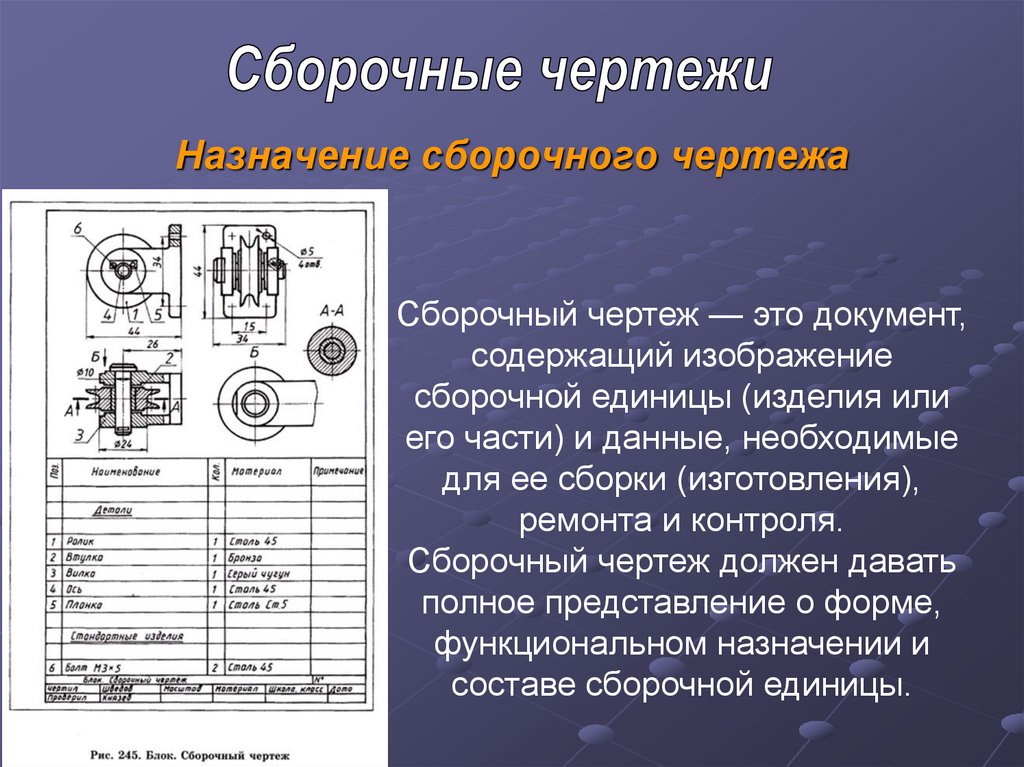 Сборочный чертеж должен давать