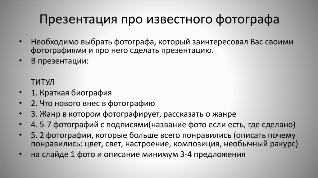 Презентация про известного фотографа• Необходимо выбрать фотографа, который заинтересовал Вас своими