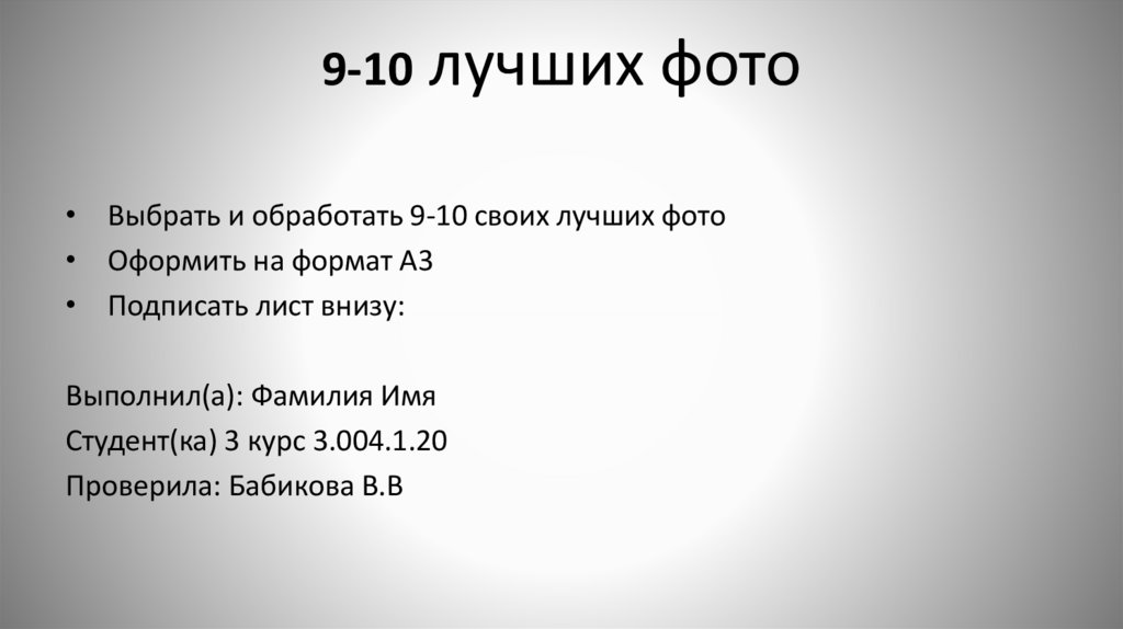 9-10 лучших фото• Выбрать и обработать 9-10 своих лучших фото