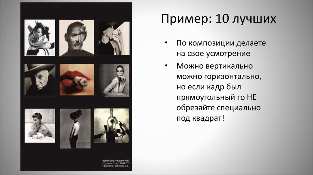 Пример: 10 лучших• По композиции делаете