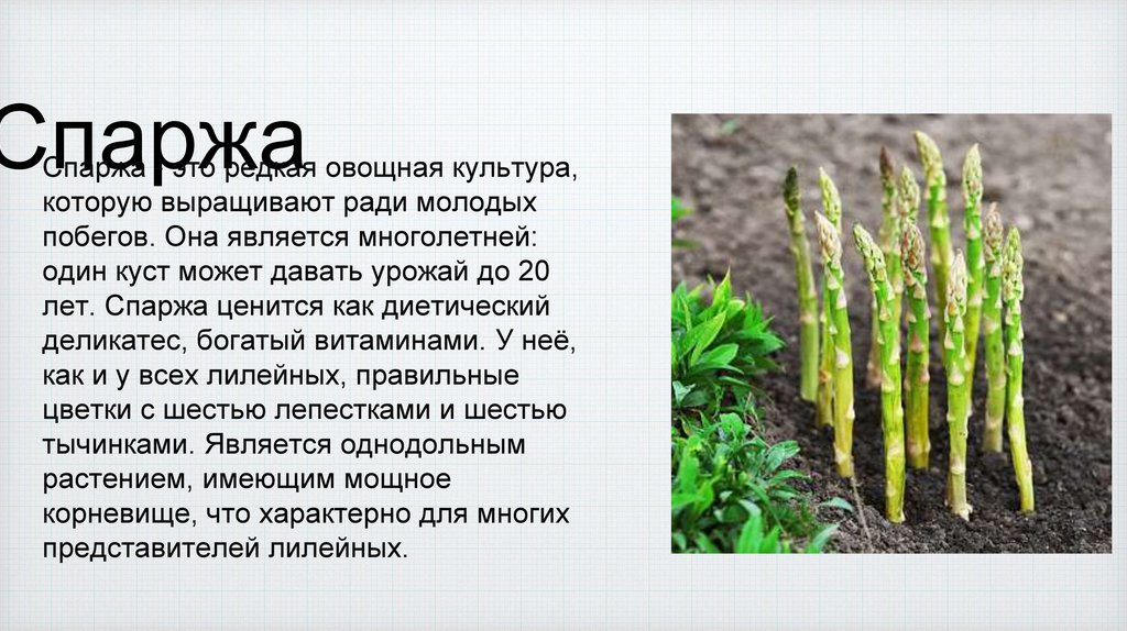 лет. Спаржа ценится как диетический