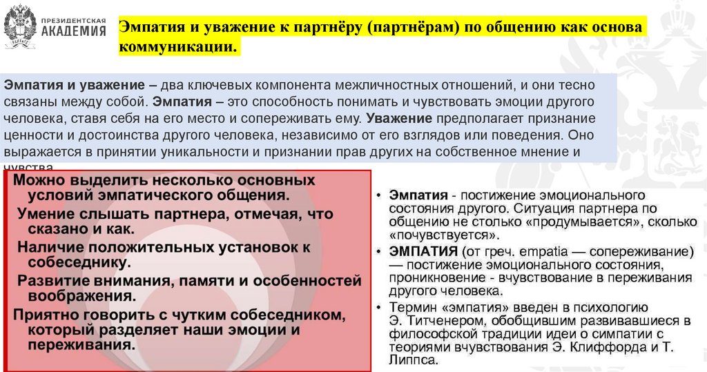 Эмпатия и уважение к партнёру (партнёрам) по общению как основакоммуникации.