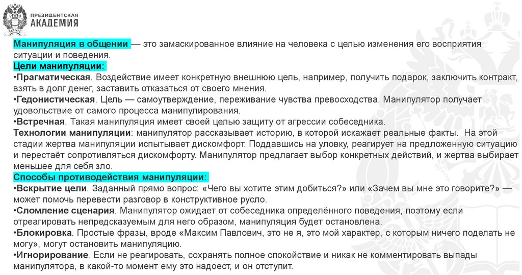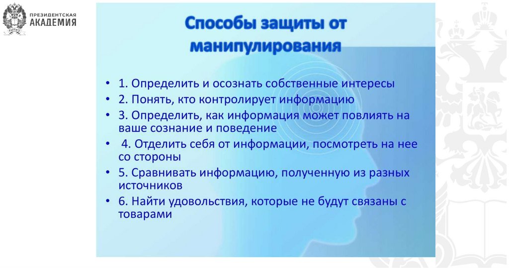 Способы противодействия манипуляции: