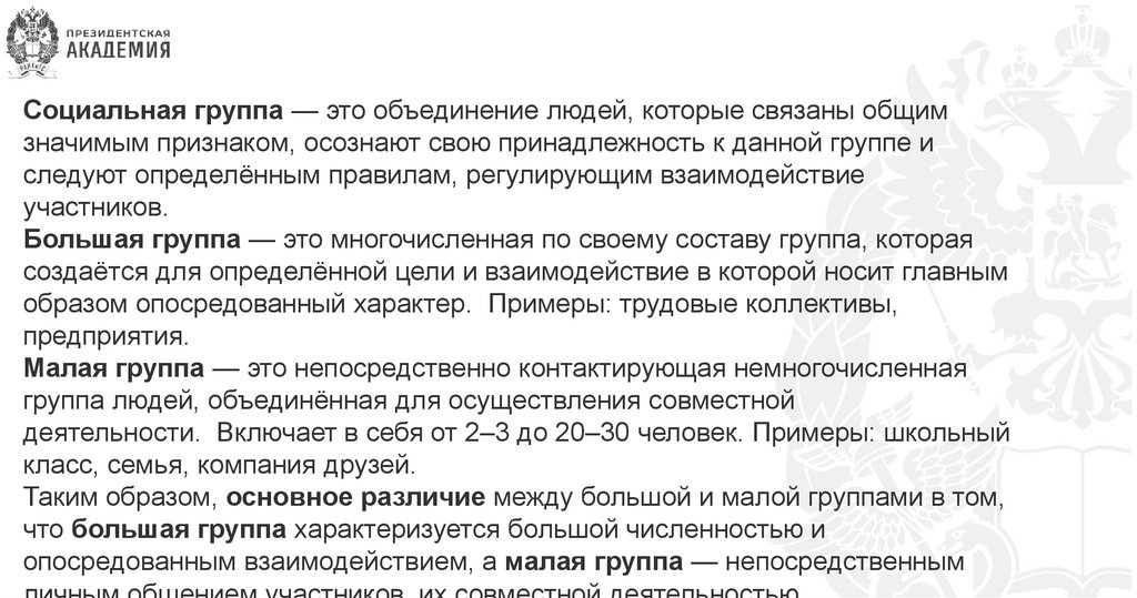 Таким образом, основное различие между большой и малой группами в том,