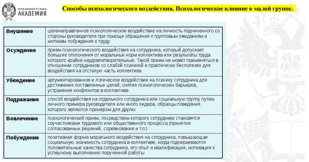 Способы психологического воздействия. Психологическое влияние в малой группе.11.