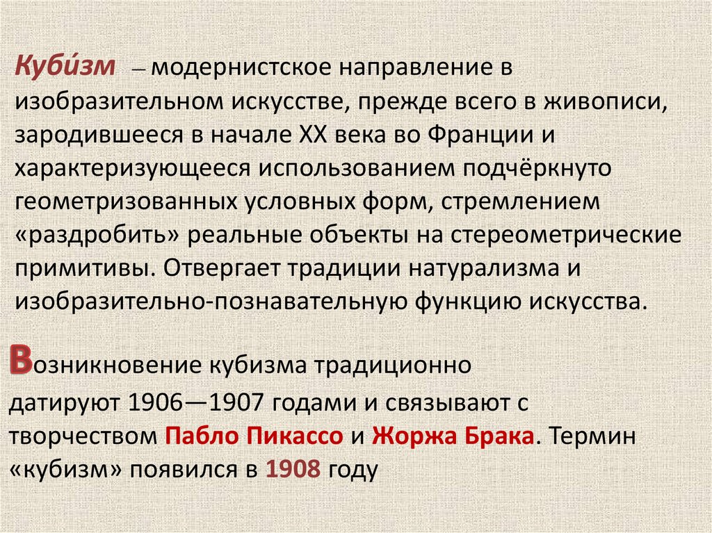 творчеством Пабло Пикассо и Жоржа Брака. Термин