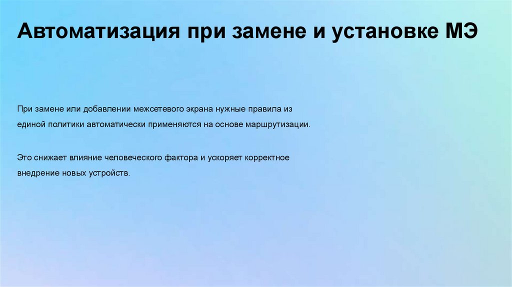 Автоматизация при замене и установке МЭПри замене или добавлении межсетевого экрана нужные правила из