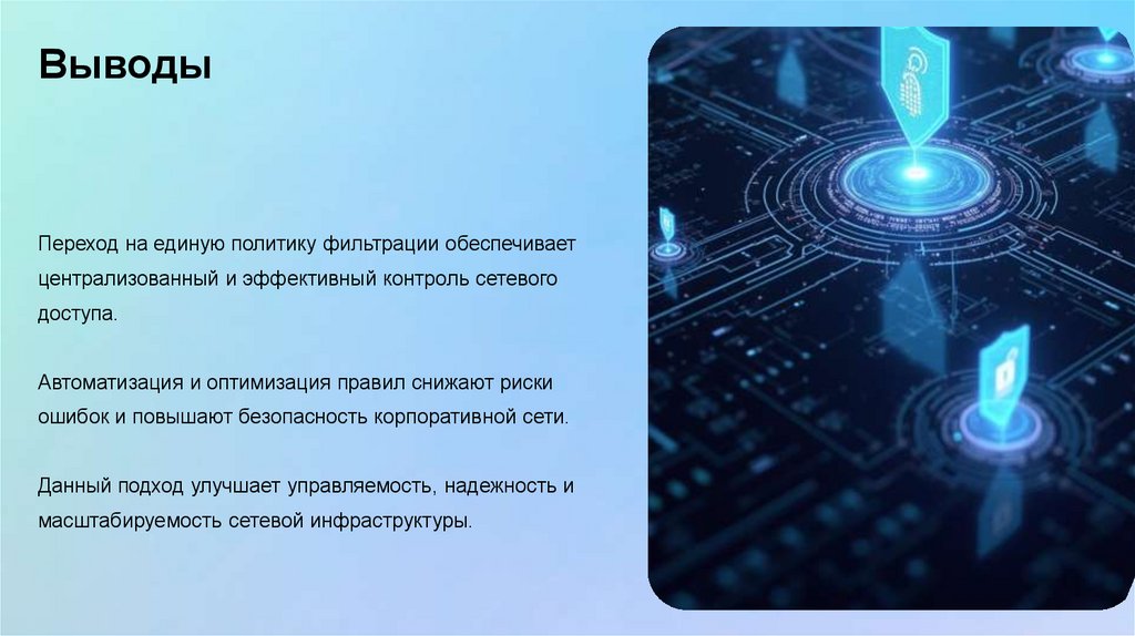ВыводыПереход на единую политику фильтрации обеспечивает