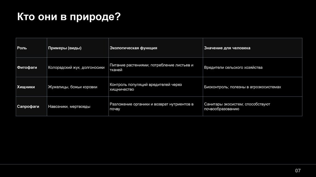 Кто они в природе?Роль