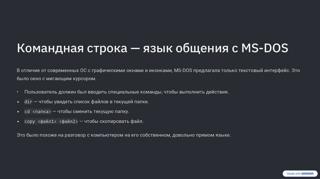 Как работает MS-DOS? Простыми словамиВообрази, что твой компьютер — это огромный завод, где кипит работа. MS-DOS в этой аналогии выступает в роли