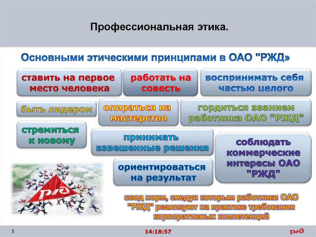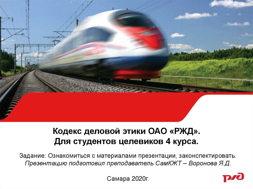 Кодекс деловой этики ОАО «РЖД».Для студентов целевиков 4 курса.