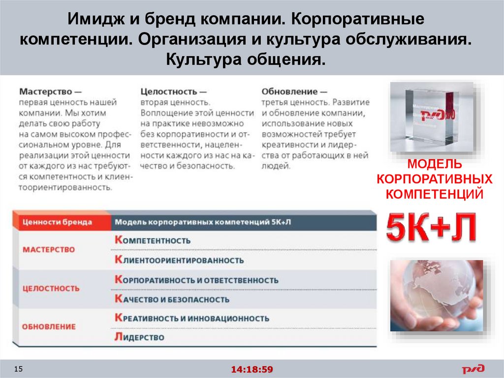 Имидж и бренд компании. Корпоративныекомпетенции. Организация и культура обслуживания.