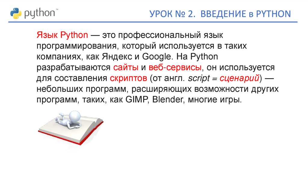 УРОК № 2. ВВЕДЕНИЕ в PYTHONЯзык Python — это профессиональный язык