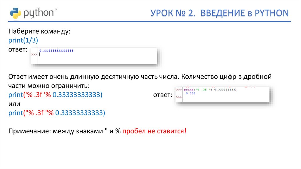 УРОК № 2. ВВЕДЕНИЕ в PYTHONНаберите команду: