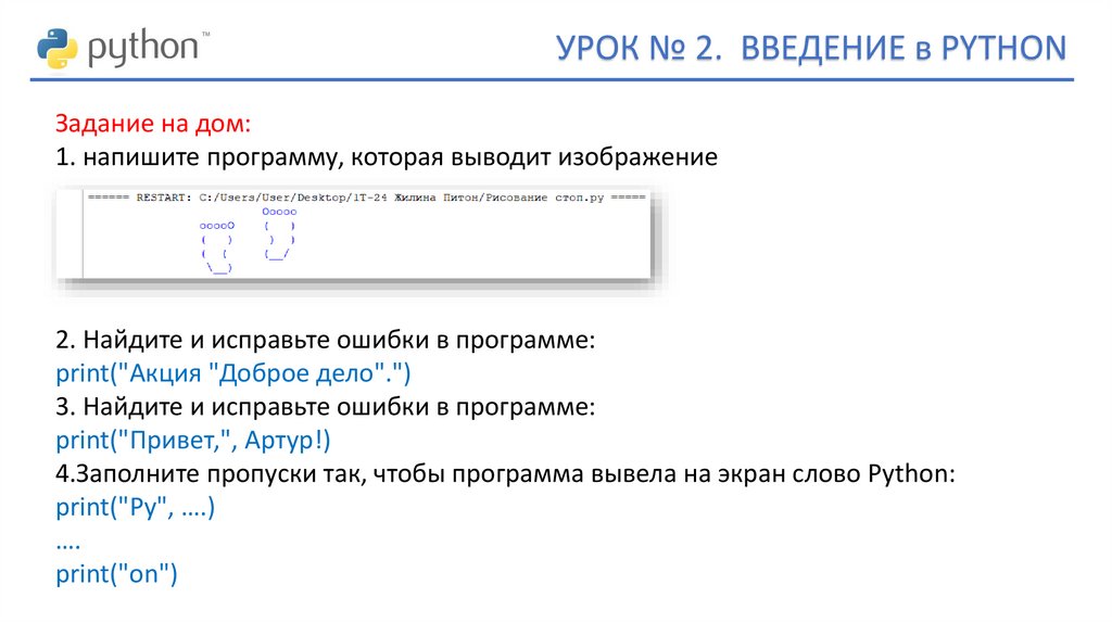УРОК № 2. ВВЕДЕНИЕ в PYTHONЗадание на дом: