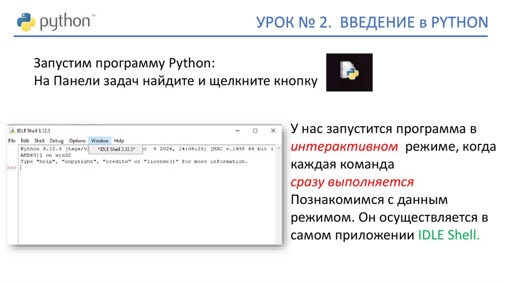 УРОК № 2. ВВЕДЕНИЕ в PYTHONЗапустим программу Python: