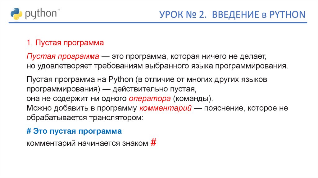 УРОК № 2. ВВЕДЕНИЕ в PYTHON1. Пустая программа